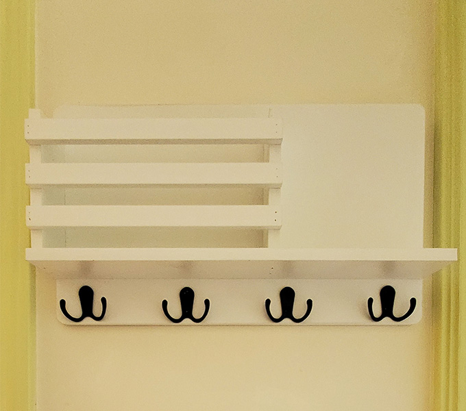 Built-in maple shelving in living room, built-in shelves and drawers in first bedroom, built-in benches in 2nd bedroom